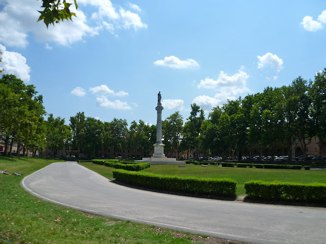 Wir parkten auf der Viale Alfonso d’Este und machten uns zu Fuß auf in das Zentrum. Vorbei ging es am Palazzo Schifanoia, ehemals Lustschloss gegen Langeweile, heute Museo Civico, und an der Kirche Santa Maria in Vado zum Dom, der zwischem dem 12. und 14. Jahrhundert entstand. Schräg gegenüber liegt der Palazzo Communale (1243). Hier residierten die Este bevor sie ins benachbarte Castello einzogen. Dieses Castello Estense liegt gleich neben an. Der Bau begann 1385, zog sich allerdings 200 Jahre hin, weil die Este zwischendurch die Festung in einen Renaissance-Palast umwandeln wollten. Auf der Piazza Savonarola vor dem Castello steht ein Denkmal des 1472 in Ferrara geborenen gleichnamigen Reformators.