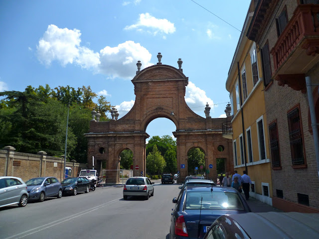 Die von beeindruckenden Renaissance-Palästen gesäumte Via Corso Ercole d’Este führt in die Renaissancestadt. Als erstes der Palazzo dei Diamantini – hier ist Name Programm. Seine Fassade besteht aus diamantartigen Mamorquadern. Gleich daneben der Palazzo Sacrati, der mit seinem schönen Portal um 1500 erbaut wurde. Am Schluss folgt der Palazzo Massari, der im 16. Jahrhundert erbaut wurde und heute das Boldoni-Museum beherbergt. Über die Piazza Ariostea und durch das Stadttor Corso giovecca ging es zurück zum Auto.